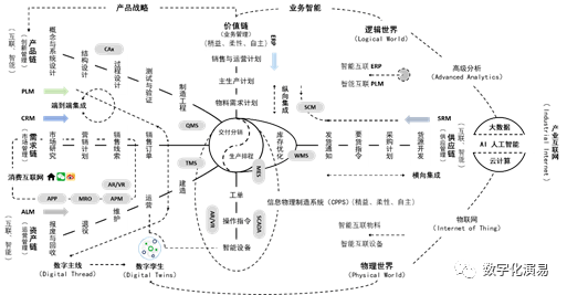 大体上,在信息物理制造网络的构件中,既有ERP、PLM、MES、WMS、SRM、CRM等传统IT系统,也有物联网、大数据、机器学习等新一代数字化技术。作为数字化转型的举措之一,本文所提到的信息物理制造网络,想要表达的是制造型企业的数字化基础设施必须是虚实融合、高度集成、安全可靠和实时协同,并形成一个有机的整体(系统)。