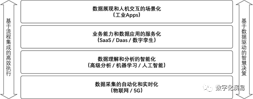 转型平台 制造型企业数字化转型的技术支撑是工业互联网平台。与传统的IT解决方案所不同的是,工业互联网平台是“流程导向”和“数据驱动”的有机结合。尤其在“数据驱动”方面,工业互联网平台具有数据采集自动化、业务分析智能化、人机交互场景化等特点。