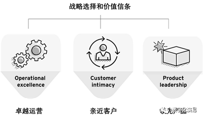 既然数字化转型的目的是为了更好地生存和发展,数字化转型就必须先和企业的发展战略进行有机地结合。根据CSC Index系统公司的咨询师特里西(Michael Treacy)和威尔斯马(Fred Wiersema)的说法,制造型企业的发展战略和价值信条有三种:卓越运营(OperationalExcellence)、领先产品(Product Leadership)和亲近顾客(Customer Intimacy)。不同的企业,可以根据自身的行业特点、行业地位和能力禀赋,选择其中的一种或几种进行发力。比如,面向终(C)端市场的企业,必然要选择“亲近顾客”,而面向企业(B)端市场的企业,其选择可能是“卓越运营”或“领先产品”。