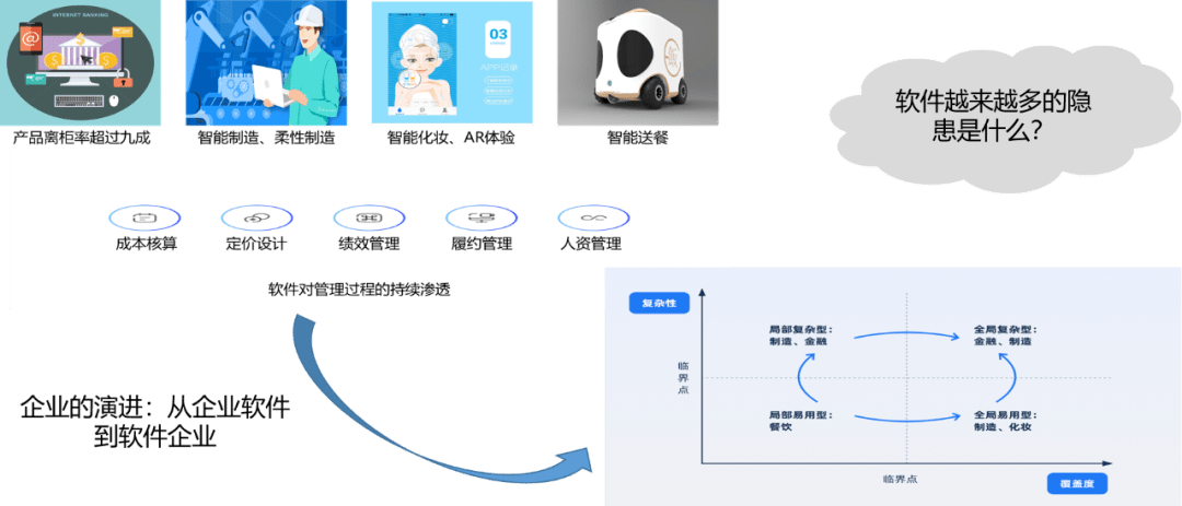 企业最终会走向整体转型 如果数据能够给企业提供十足的价值,企业自然会需要更多数据能力,与此相关的软件也会越来越多。除了数据价值之外,新的客户体验、新的业务工作方式,也会带动软件的增加,在不同规模的企业中,这是一个伴随着行业软件获取成本持续下降而逐步发展的过程,不会太快,但也未必很慢,尤其是在“东数西算”这样的大型国家基础设施建设逐步成型之后,国家当前的政策还是保持要在新基建上适度超前投资。所以,随着数据治理重要性的提升,软件治理的重要性也是要同步上升的,不然,软件多了也会混乱,一些低代码开发的先行企业已经感受到由于缺乏开发体系、软件版本管理能力带来的不便。