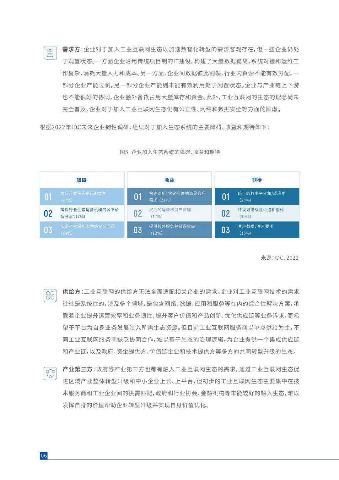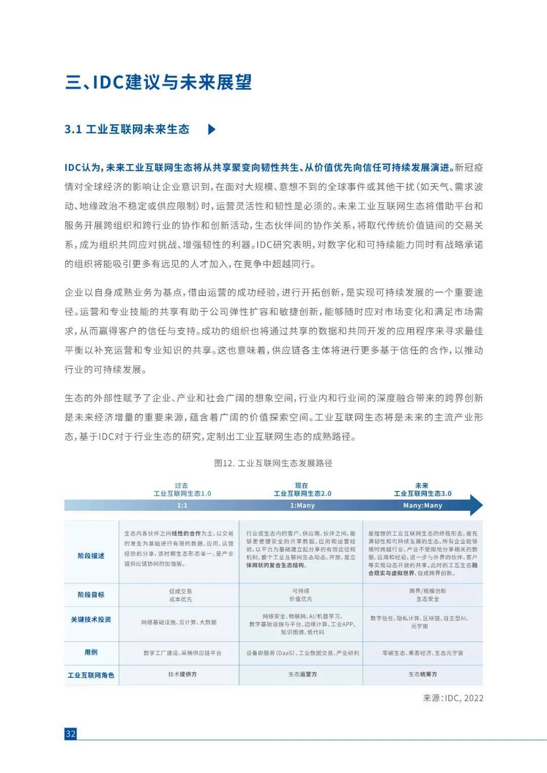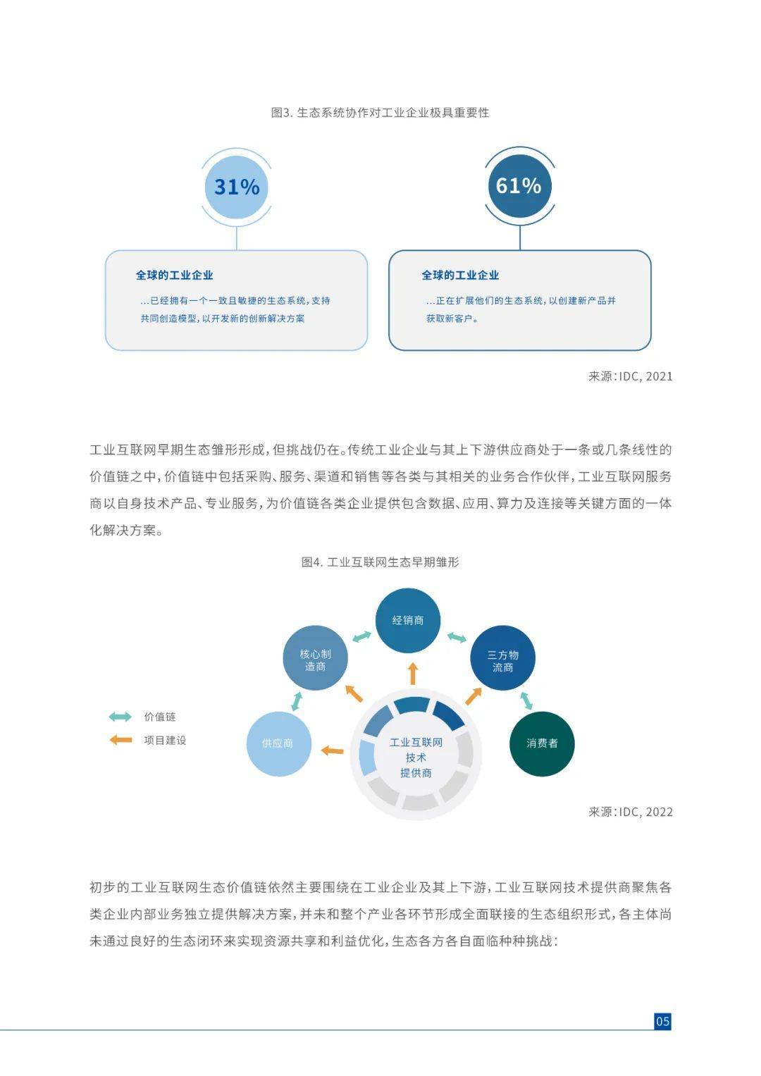 在金融不稳定和市场不确定性的双重承压下,企业战略必须适应当下以保持业务稳定增长,推动组织在短时间内接受变革,实现生存和繁荣。根据IDC 2022年一项调查显示,企业已经意识到利用工业互联网生态合作伙伴来支持自身业务,共享数据和洞见、共享应用以及专业知识,是一种高效的业务运行和创新方式。84%的受访企业已经开始或已经参与数字优先战略,超过一半的受访企业预计到2023年将扩大其核心行业以外的工业互联网生态。