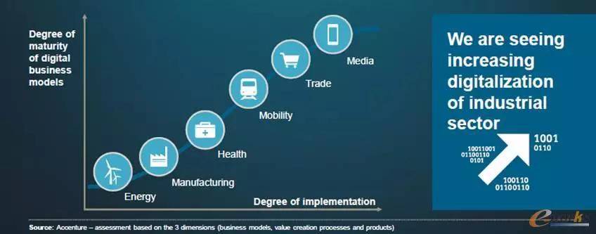 ▲埃森哲公司 对于各行业数字化转型程度的分析