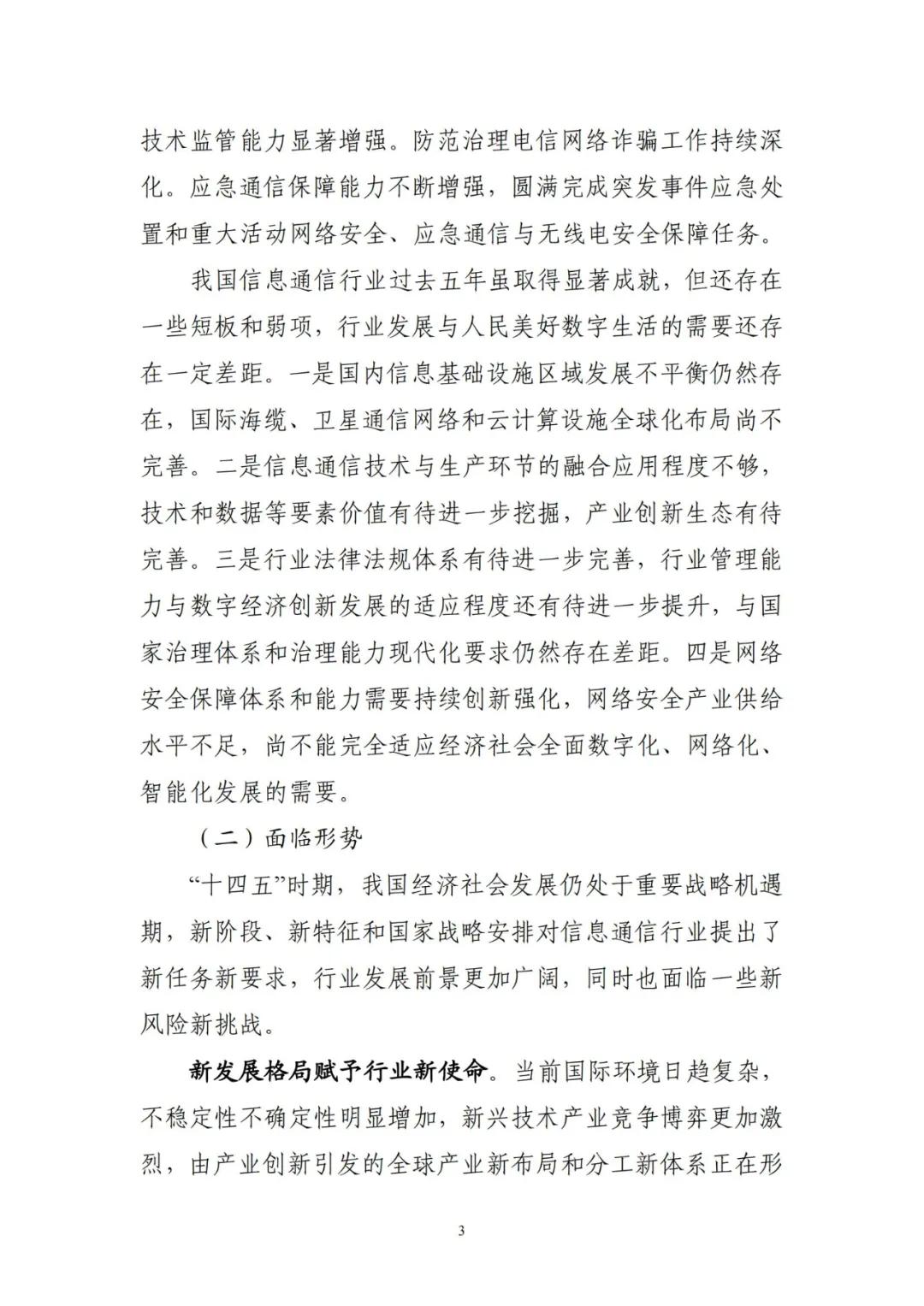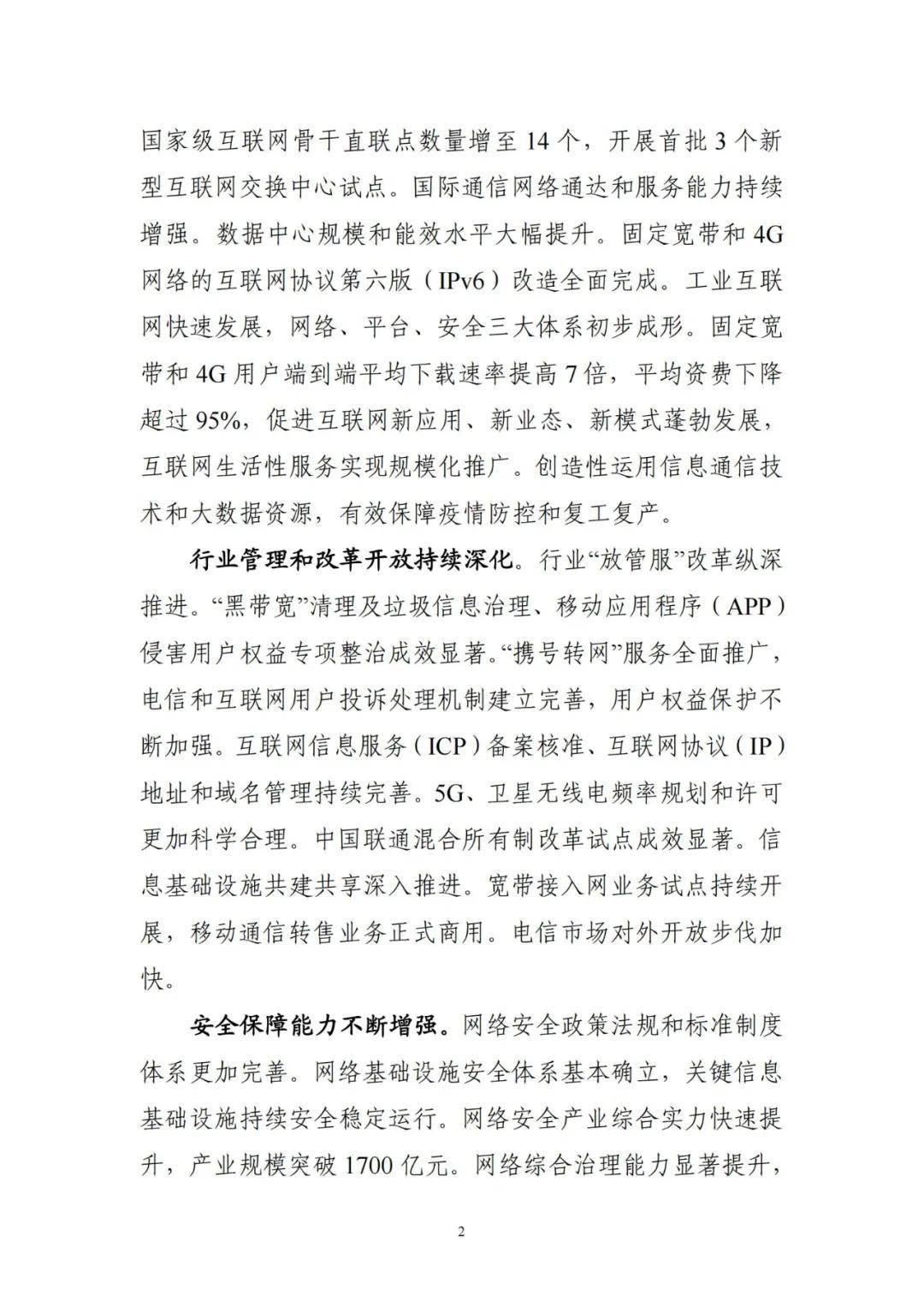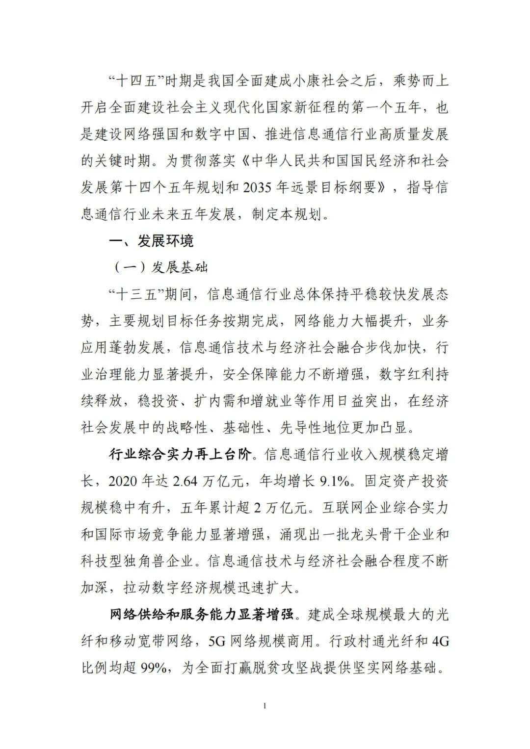 四是强化安全保障。完善网络安全分类分级管理制度,落实保障能力提升计划,加强网络安全供给创新突破,强化网络安全技术保障,加速培育网络安全产业生态。 以下为《“十四五”信息通信行业发展规划》全文。 来源:工信部