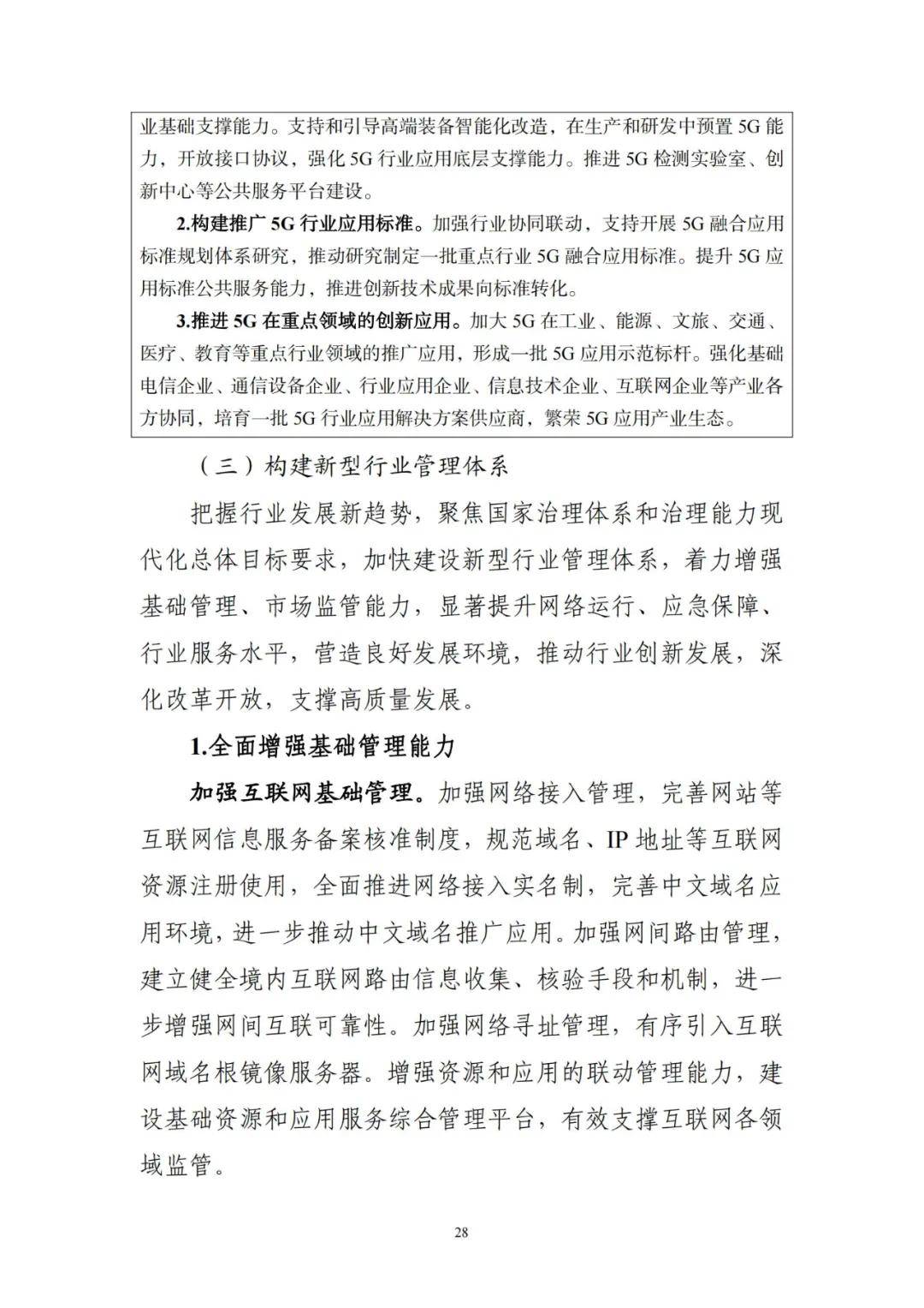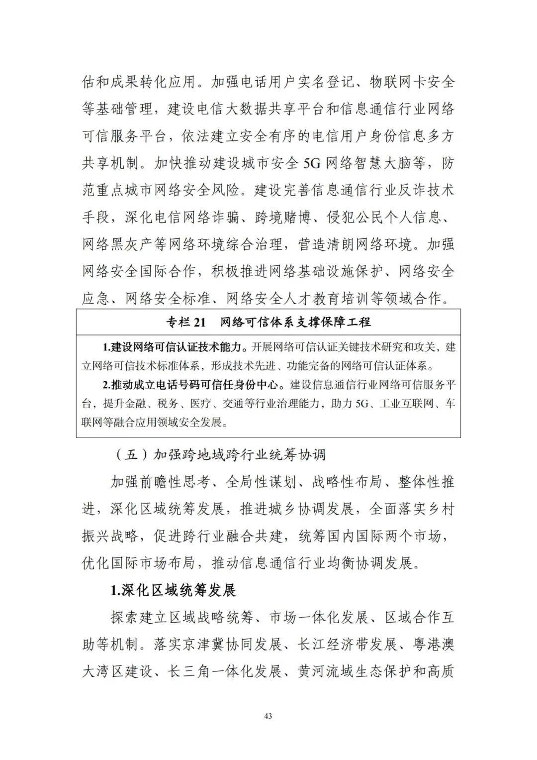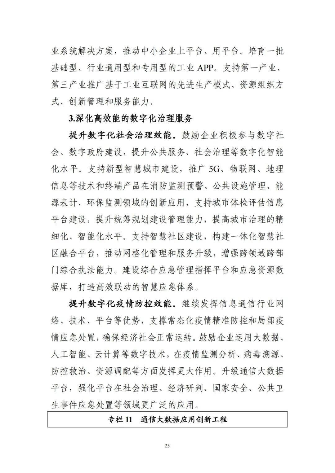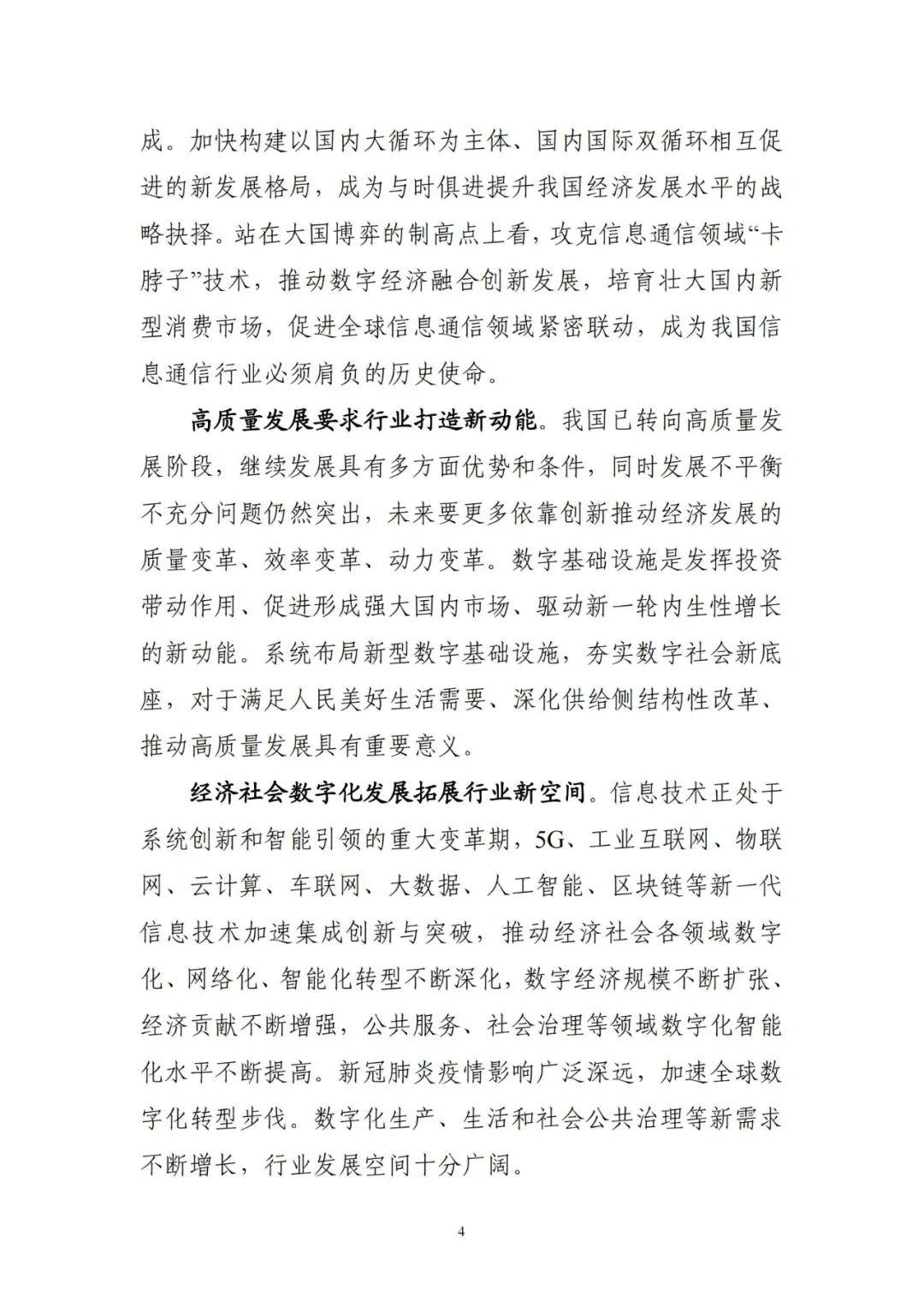 四是强化安全保障。完善网络安全分类分级管理制度,落实保障能力提升计划,加强网络安全供给创新突破,强化网络安全技术保障,加速培育网络安全产业生态。 以下为《“十四五”信息通信行业发展规划》全文。 来源:工信部
