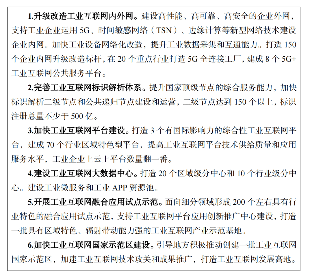 二是加快设施建设。加快利用5G等新兴网络技术升级改造工业网络。构建自主可控的标识解析体系,扩大标识服务范围,推动标识规模化应用。构建综合型、行业型、专业型平台体系。