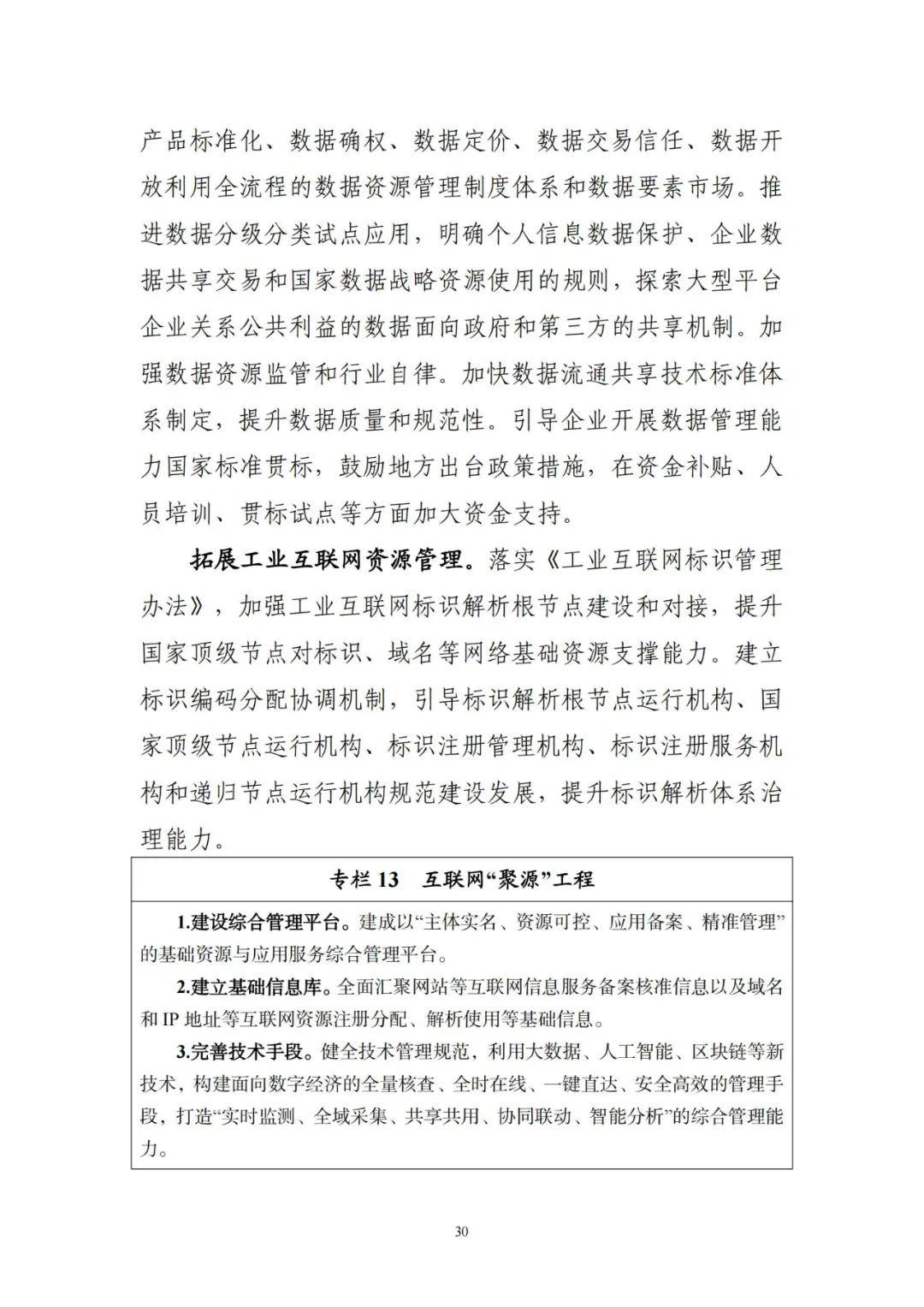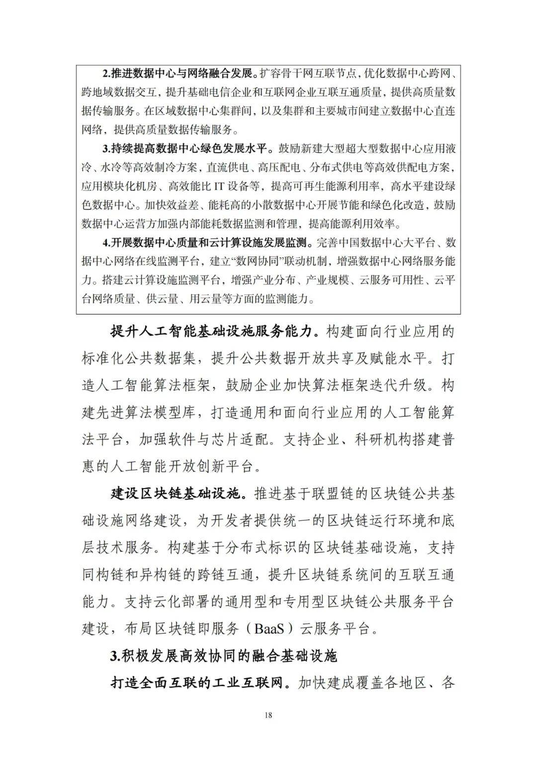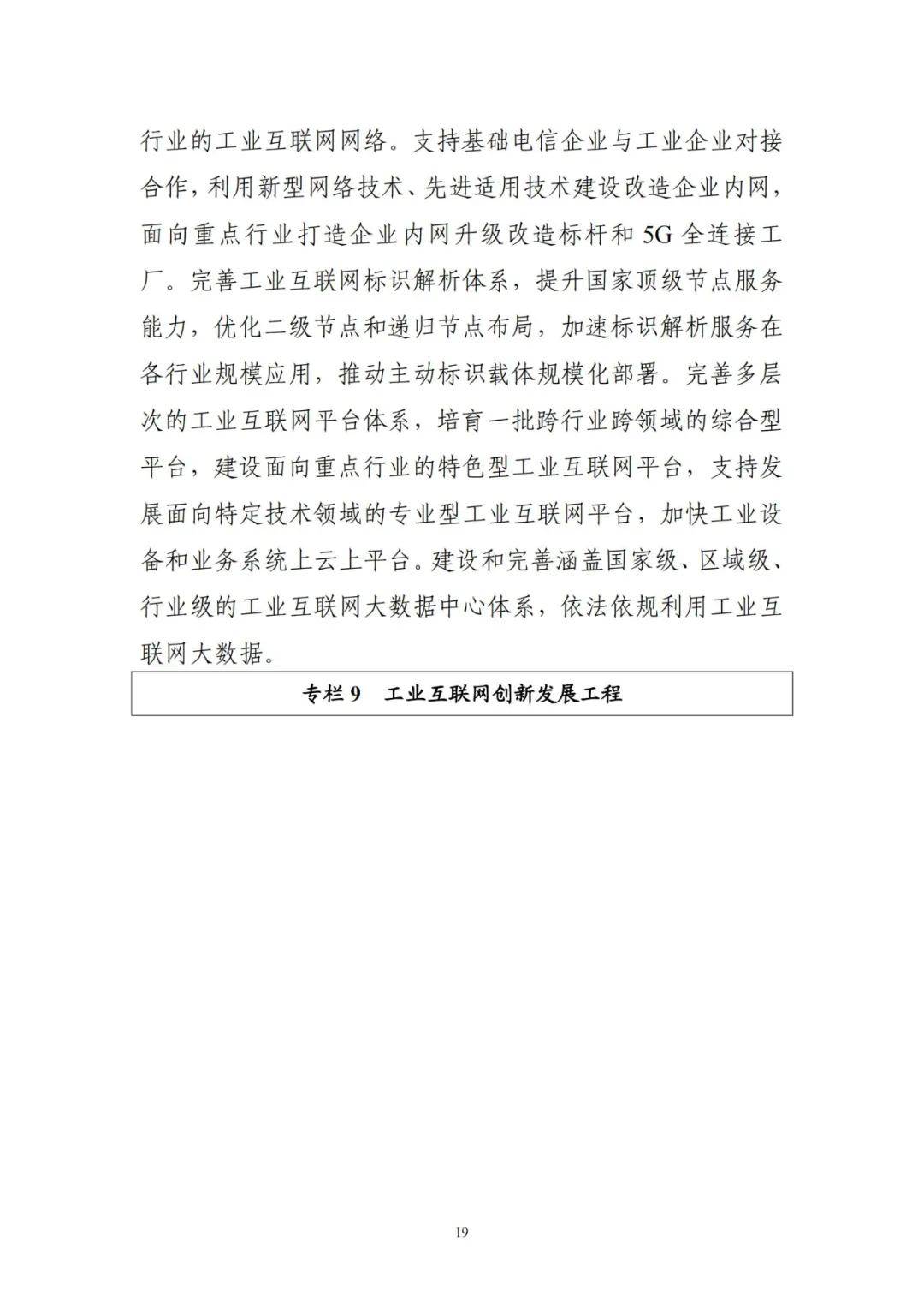 除此之外,要积极发展高效协同的融合基础设施,打造全面互联的工业互联网。加快建成覆盖各地区、各行业的工业互联网网络。支持基础电信企业与工业企业对接合作,利用新型网络技术、先进适用技术建设改造企业内网,面向重点行业打造企业内网升级改造标杆和5G全连接工厂。完善工业互联网标识解析体系,提升国家顶级节点服务能力,优化二级节点和递归节点布局,加速标识解析服务在各行业规模应用,推动主动标识载体规模化部署。完善多层次的工业互联网平台体系,培育一批跨行业跨领域的综合型平台,建设面向重点行业的特色型工业互联网平台,支持发展面向特定技术领域的专业型工业互联网平台,加快工业设备和业务系统上云上平台。建设和完善涵盖国家级、区域级、行业级的工业互联网大数据中心体系,依法依规利用工业互联网大数据。加强云计算中心、物联网、工业互联网、车联网等领域关键核心技术和产品研发,加速人工智能、区块链、数字孪生、虚拟现实等新技术与传统行业深度融合发展。